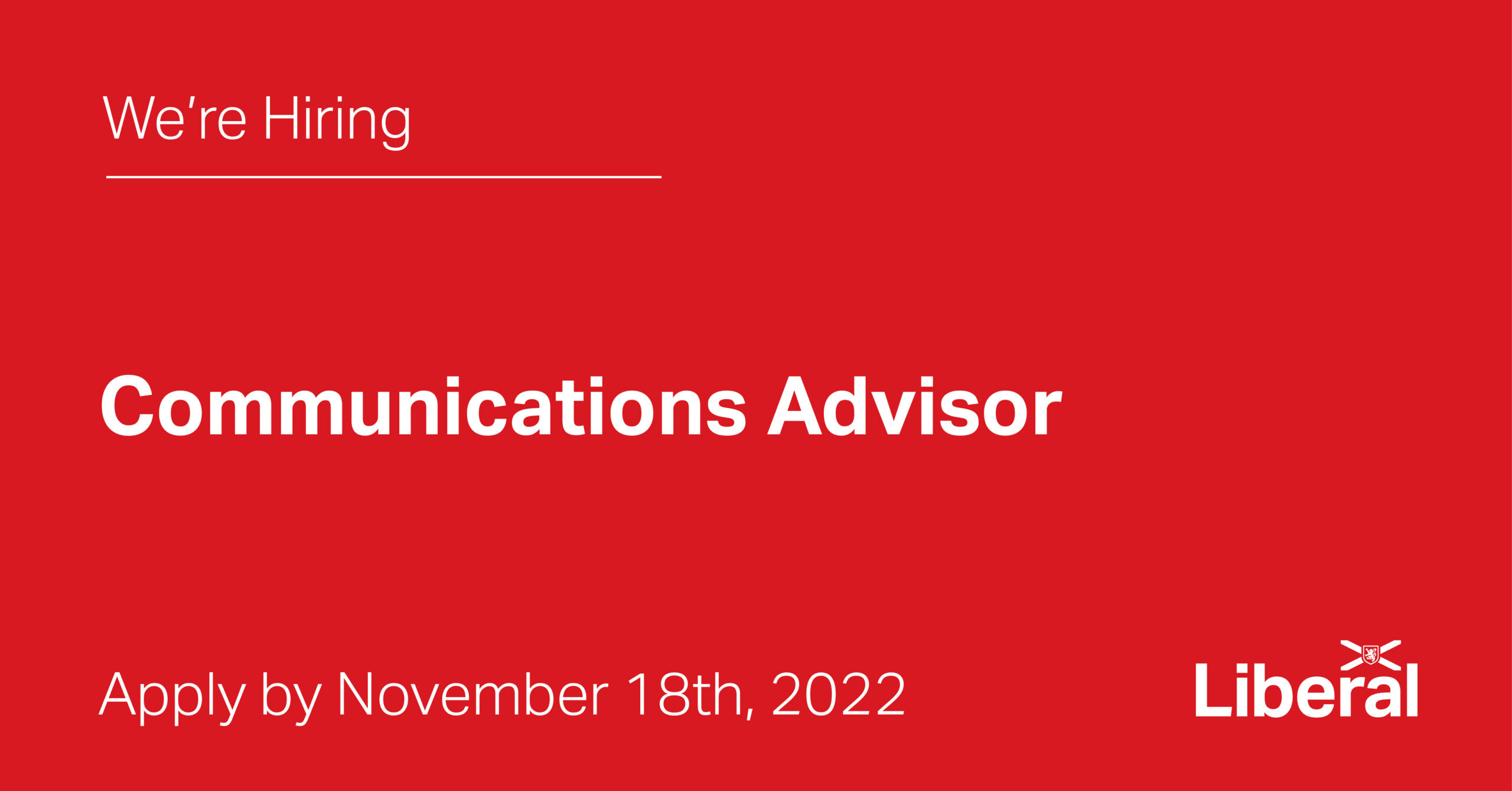 The Nova Scotia Liberal Caucus is seeking a Communications Advisor. Should you, or someone you know, fit the description below, we encourage you to apply. General Job Description: The Communications […]