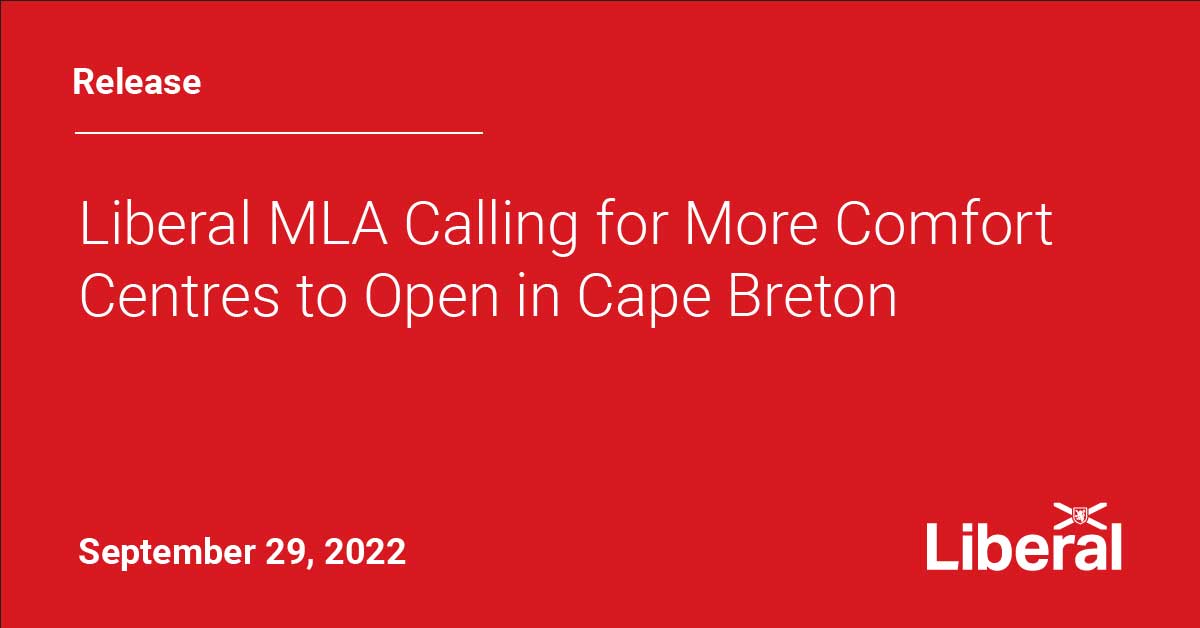 Liberal MLA Calling for More Comfort Centres to Open in Cape Breton